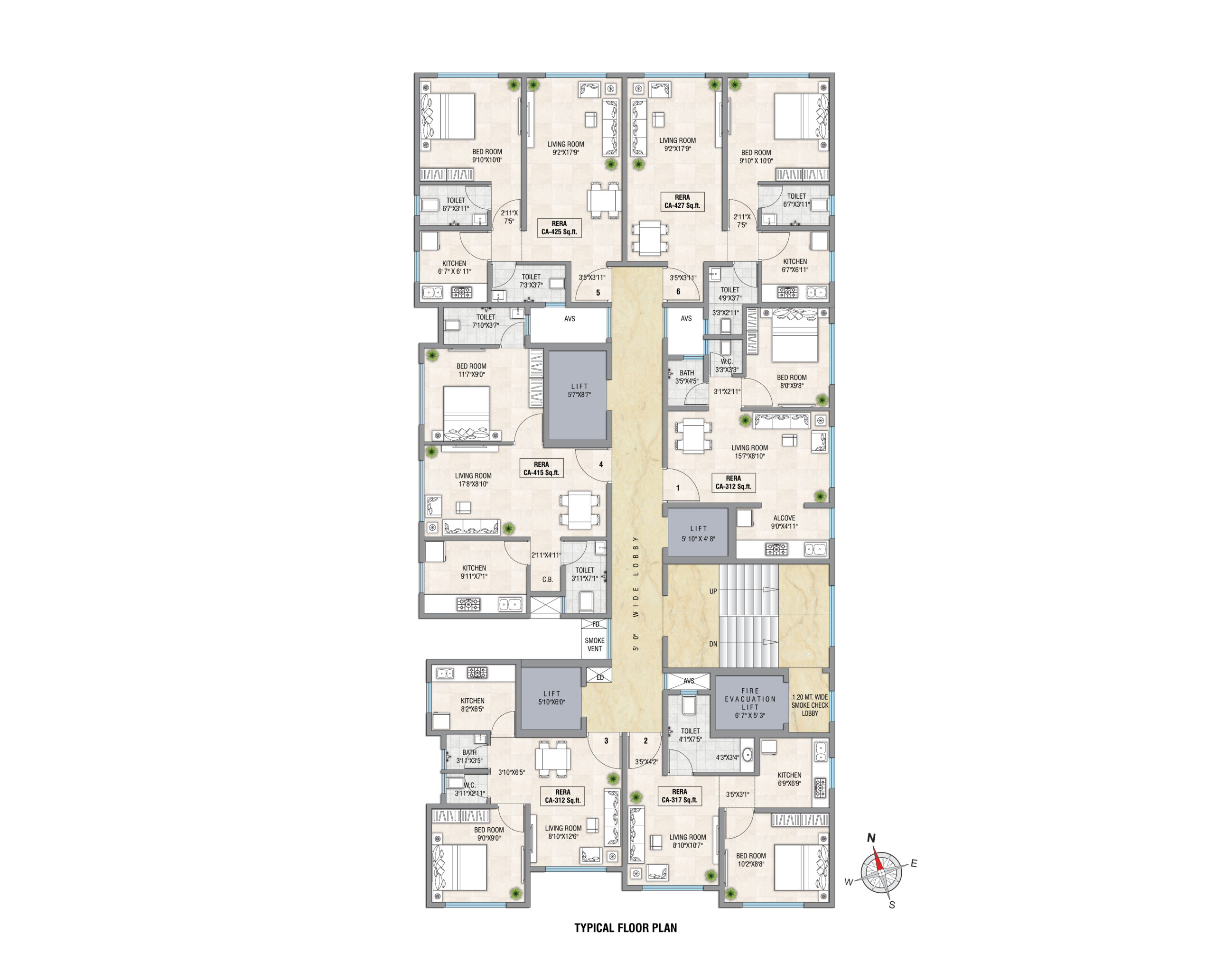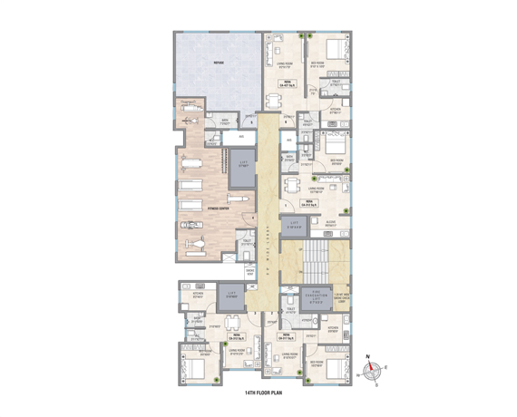 The 417 & 425 sq.ft. residences are thoughtfully designed to offer smart space utilization and everyday comfort. Well-defined living and dining areas create a balanced flow, while comfortable bedrooms ensure privacy and relaxation. Large windows allow ample natural light and ventilation throughout the home.