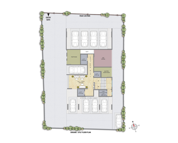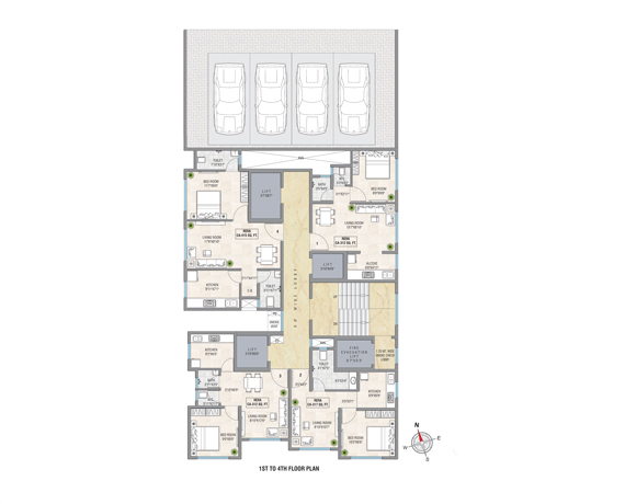 Well-planned parking spaces designed for easy access and organized vehicle movement.